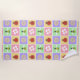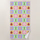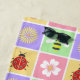 Pastellrosa, gelbe, lila und grüne Plätze sind mit Laubbäumen, Hölzern, Gänseblüten und Honigbienen geschmückt und von einer dichten Naht umgeben, die ein lustiges und süßes, vom Frühling inspiriertes Muster schafft.