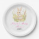 Hübsche Teller mit Babydusche mit einem zauberhaften Kaninchen und rosa und gelben Blumen. Ideal für eine Frühjahr- oder Sommerdusche. Die Wörter können geändert werden, um Ihre eigenen Angaben oder Anforderungen Anzug