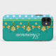 Ein sehr hübscher Case-Mate Fall, um Ihr iPhone 5/5 Smartphone zu personalisieren, mit einem Randmuster aus goldgelben Düften und weißen Polka Dots auf Sky Blue; Teil der posh und painterly "Spring Sunshine" Kollektion.