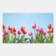 Denken Sie Frühling! Dieses Foto zeigt schöne Tulpen gegen einen sonnigen blauen Himmel.