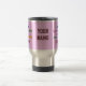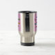 Diese Reise-Tasse kennzeichnet eine Silhouette einer Cheerleader mitten in einer Sprung umgebenen Collage der Wörter springen, aufprallen, tanzen, bremsen, stolpern und Beifall in Blauem, in Grünem, in Rotem und in Gelbem/in der Orange. Es gibt auch einen Placeholder für Ihren Text - Ihr Name, Ihr Cheerleaderteam oder eine fördernde Mitteilung.