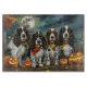 Entfesseln Sie den unheimlichen Geist mit diesem unheimlichen Halloween-Design, das eine Hundepackung unter einem dunklen, mondbeleuchteten Himmel bietet, umgeben von fliegenden Fledermäusen und glühenden Kürbissen. Ideal für diejenigen, die mit ihren wütenden Freunden eine Touch voller Furcht Liebe haben!
