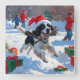 Springer Spaniel Running Snow mit Weihnachtshut Quadratische Wanduhr