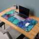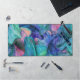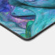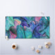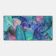 Speckled glossy paint daubs layered thickly in a solid field of pinks, blues and aqua teals.
