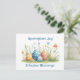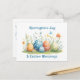 Feiern Sie die Schönheit der Saison mit dieser eleganten Postkarte, die für den Osterjubiläum entworfen wurde. Die Vorderseite zeigt eine bezaubernde Vektorgrafik pastellfarbener Ostereier, eingebettet in zarte Wildblumen, die eine weiche und einladende Frühjahrsszene schaffen. Die sanfte Farbpalette fügt eine frische, fröhliche Touch hinzu, die sich perfekt für Osterbrunnen eignet. Auf der Rückseite ergänzt ein ruhiger pastellblauer Hintergrund das Frontdesign. Im Mittelpunkt eines lustigen, spielerischen Schriftartes steht die herzliche Botschaft: "Ein freudiges Ostern voller Liebe, Lachen und Sonnenschein!" Unten zwei individuell anpassbare Linien bieten Platz für eine Familiensignatur und Tagline, sodass jede Karte einzigartig persönlich ist. Die Begrüßung kann auch individuell angepasst werden, um sicherzustellen, dass Ihre Osterwünsche genau wie gewollt geteilt werden. Mit seiner Mischung aus Wärme, Charme und Personalisierung ist diese Karte der perfekte Weg, um jemandes Ostern aufzuheitern und die Freuden des Frühlings zu feiern!