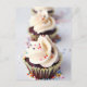 Ein modernes Foto von drei Kuchen hintereinander. Jeder Schokoladenkuchen hat einen leckeren Vanille-Zuckerguss und Regenbogen-Glitzern.