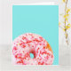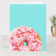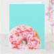 Hier gibt es einen Donut mit hellrosa Zuckerguss und Sprinklen