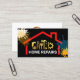 Die Cove verfügt über einen roten Zuhause-Rahmen, der mit Spritzer verputzt ist. In der Gebäude-Struktur ist ein goldenes handyman Tools Logo können Sie neben dem Firmennamen "ZUHAUSE REPAIRS" verwenden. Auf der Rückseite, in einer weißen Abdeckung, befindet sich oben ein Hammerlogo, das Sie verwenden können. Danach folgen Ihr Name, Ihre Kontaktdaten und ein Slogan, um Ihre Dienste bekannt zu machen. Eine wunderschöne Karte für Handy- und Gebäude-Themen. #handyman #constuctionhandyman #homerepairtraiter #construction #builder #remodeling #handymantools #buildingtragner #homerepair #interiordesign #dof #roofing #generaltragnehmer #paintsplatter #houseEiter #zazzlemade