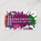 Die Abdeckung besteht aus einem Spritzer mit einer Leiter und einem Rollbürsten, die mit der Umgestaltung und Malerei beginnen. Neben der Leiter befindet sich der Firmenname "ZUHAUSE PAINTING", den Sie ändern können, sowie die Kontaktdaten. Auf der Rückseite, in einer weißen Abdeckung mit einem gelben Spritzer, oben befindet sich ein goldenes Pinsellogo, das Sie verwenden können, gefolgt von Ihrem angesehenen Namen und den Kontaktdetails. Eine tolle Karte für Maler.