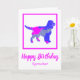 Sprocker Silhouette de chien espagnol en rose chaud fou et bleu brillant abstrait motif moderne. Le message d'anniversaire à l'intérieur peut être changé à tout ce que vous voulez. Personnalisez avec le nom sur le devant.