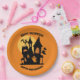 Spuk Haus Halloween-Party Papier Teller! Orange und schwarz mit einem Spuk Haus, Geist im Spuk Haus und herumfliegen, und eine fliegende Hexe auf Broomstick!