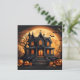 Spuk Haus mit halloween Kürbis und Fledermäusen unter Vollmond, Happy Halloween