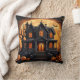 Spuk Haus mit halloween Kürbis und Fledermäusen unter Vollmond, Happy Halloween