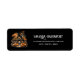Adressetiketten mit einer coolen und sprichwörtlichen Abbildung eines Spuk Holzhauses. Umgeben von großen orangefarbenen Kürbissen und Bäumen mit orangefarbenen Blätter. Fenster mit orangefarbenen Lichtern sorgen für ein schönes Licht. Spaß Halloween Design.