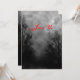 Eine individuelle Einladungsvorlage, die Join Us in blutroten Buchstaben auf der Vorderseite und auf der Rückseite liest, hat schwarze grungy Schriftzeichen und Vintage schwarze Flakketten auf einem unheimlichen Halloween-Himmel mit mistigen Bäumen entlang einer dunklen Spuk Straße, gotischen Raben und einem wolkigen Vollmond in Schwarz, Weiß und Grau. Passen Sie es an, um Ihre Schriftart, Größen und mehr zu ändern, und sogar Ihr Design für später retten.