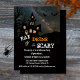 Halloween Abendessen Party Einladung mit einem Spuk Haus auf einem Hügel in der Nacht, mit Spinne und Fledermäuse ...