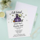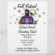 Ein Flyer für eine Schulspendenaktion, ein Herbstfest oder ein Halloween-Party mit einer Darstellung eines lila "Spuk Schulhauses", umgeben von Sternen und Vollmond. Schoolhouse hat eine Kürbislaterne, eine schwarze Katze, Spinnennetze und Fledermäuse. Personalisieren Sie mit Details zu Ihrem Anlass.