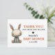 Personalisierte Halloween Babydusche danke Karten, um Ihrem Gast zu danken, dass er Ihr Dorf ist. Niedliches Design mit Kaninchenpuppe und orangefarbenen, schwarzen und weißen Farben. Vollständig editierbar mit dem Namen und dem Party der Mutter.
