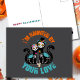 Diese Zuckerschädelkatzen sind nicht nur spukhaft, sie sind hoffnungslos von der Liebe Spuk. Dieses sonderbare Halloween-Postkartenspiel enthält zwei mit Augen Skelettkatzen und eine sehr mutige kleine Maus, mit dem Satz "Ich bin von deiner Liebe Spuk" stehend vor einem kühlen, dunkelgrauen Hintergrund. Es ist der purpurrote Weg, Halloween-Zuneigung an jemanden zu schicken, der seine leckere Seite bekommt. Auf der Rückseite befindet sich eine einfache "HAPPY HALLOWEEN" Nachricht, die den Raum für Ihre eigene unheimliche (oder bezaubernde) Note verlasst.