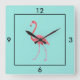 Square Clock-Flamingo Square Wall Clock Quadratische Wanduhr