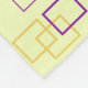Dieses Muster besteht aus überlappenden Quadraten in zwei verschiedenen Farbtönen - goldgelb und lila - auf hellgelbem Hintergrund angeordnet. Die Quadrate variieren in ihrer Größe, wobei einige als eigenständige Elemente erscheinen, während andere miteinander verwoben sind, was ein Gefühl von Tiefe und Bewegung schafft. Zusätzlich sind kleine rechteckige und lineare Akzente verstreut, was den abstrakten und dynamischen Charakter des Designs noch verstärkt.