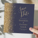Square Dark Blue Gold Glitzer Save the Date Ankündigung
