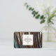 Eine stilvolle Visitenkartenvorlage mit einem schwarzen Panel mit 1,3 in quadratischer Größe auf der Vorderseite. Name und Jobtitel/Geschäftstyp in der Frontblende. Der Name wird in zwei Zeilen in Hauptstädte erstellt, die einen zusätzlichen Platz zwischen den einzelnen Buchstaben bieten, was ein hochwertiges Design der Designermarke verleiht. Das quadratische Paneel ist mit zwei rechteckigen Motiven geschmückt, die mit einem der nützlichen Schriftart von Zazzle erstellt wurden. Details zu E-Mail, Web, Adresse und Telefonie sind schön auf der Rückseite der Karte mit dunkelgrauem Hintergrund angeordnet. Diese Karte kann auch weiter angepasst werden. Diese Vorlage ist auch in verschiedenen Stilen verfügbar, einige mit flachem Hintergrund und Hintergrund. Auch mit verschiedenen Farbpaneelen erhältlich.