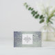 Eine stilvolle Visitenkartenvorlage mit einem schwarzen Panel mit 1,3 in quadratischer Größe auf der Vorderseite. Name und Jobtitel/Geschäftstyp in der Frontblende. Der Name wird in zwei Zeilen in Hauptstädte erstellt, die einen zusätzlichen Platz zwischen den einzelnen Buchstaben bieten, was ein hochwertiges Design der Designermarke verleiht. Das quadratische Paneel ist mit zwei rechteckigen Motiven geschmückt, die mit einem der nützlichen Schriftart von Zazzle erstellt wurden. Details zu E-Mail, Web, Adresse und Telefonie sind schön auf der Rückseite der Karte mit dunkelgrauem Hintergrund angeordnet. Diese Karte kann auch weiter angepasst werden. Diese Vorlage ist auch in verschiedenen Stilen verfügbar, einige mit flachem Hintergrund und Hintergrund. Auch mit verschiedenen Farbpaneelen erhältlich.