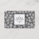 Eine stilvolle Visitenkartenvorlage mit einem 1,3-Zoll-Quadrat und einem schwarzen, doppelten weißen Paneel auf der Vorderseite. Name und Jobtitel/Geschäftstyp in der Frontblende. Der Name wird in zwei Zeilen in Hauptstädte erstellt, die einen zusätzlichen Platz zwischen den einzelnen Buchstaben bieten, was ein hochwertiges Design der Designermarke verleiht. Das quadratische Paneel ist mit zwei rechteckigen Motiven geschmückt, die mit einem der nützlichen Schriftart von Zazzle erstellt wurden. Details zu E-Mail, Web, Adresse und Telefonie sind schön auf der Rückseite der Karte mit dunkelgrauem Hintergrund angeordnet. Diese Karte kann auch weiter angepasst werden. Diese Vorlage ist auch in verschiedenen Stilen verfügbar, einige mit flachem Hintergrund und Hintergrund. Auch mit verschiedenen Farbpaneelen erhältlich.