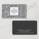 Eine stilvolle Visitenkartenvorlage mit einem 1,3-Zoll-Quadrat und einem schwarzen, doppelten weißen Paneel auf der Vorderseite. Name und Jobtitel/Geschäftstyp in der Frontblende. Der Name wird in zwei Zeilen in Hauptstädte erstellt, die einen zusätzlichen Platz zwischen den einzelnen Buchstaben bieten, was ein hochwertiges Design der Designermarke verleiht. Das quadratische Paneel ist mit zwei rechteckigen Motiven geschmückt, die mit einem der nützlichen Schriftart von Zazzle erstellt wurden. Details zu E-Mail, Web, Adresse und Telefonie sind schön auf der Rückseite der Karte mit dunkelgrauem Hintergrund angeordnet. Diese Karte kann auch weiter angepasst werden. Diese Vorlage ist auch in verschiedenen Stilen verfügbar, einige mit flachem Hintergrund und Hintergrund. Auch mit verschiedenen Farbpaneelen erhältlich.