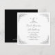 Rounded Black Vintage Floral and Black Text black and white background wedding invitation. Wedding website on the back. Black and white wedding.