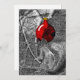 Pen and ink drawing of a squirrel climbing in a Christmas tree. The squirrel is surprised by seeing its own reflection in an ornament. The shiny red ball stands out against the black and white drawing, emphasising how strange it must be to the squirrel to see itself.