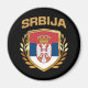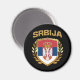 Die Nationalflagge Serbiens ist in ein Imitat goldenen Schild Form, die selbst, Erholung auf Imitaten goldene Lorbeeren Blätter, Der Name des Landes wird über dem Bild hinzugefügt.