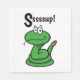 Der sonnige grüne Cartoon ratscht Schlange. Er hat große ovale Augen mit erhöhten Augenbrauen. Ein wahnhaftes Grinsen, dessen Zunge sich herausklemmt. Sein lang gekochter Körper hat einen Klappern auf der Spitze seines Schwanzes. Über der Schlange in der schwarzen Schrift ist ein Stück auf dem Wort Sup! Lesen Sssssup!