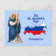 Si l'Ecosse est l'exemple le plus célèbre d'un pays sous le patronage de St. Andrew, elle n'est en aucun cas la seule. St. Andrew est aussi le patron de la Barbade, Chypre, la Grèce, la Roumanie, la Russie et l'Ukraine. Ici, un saint André pensif, vêtu d'une robe blanche et d'un manteau bleu, se penche sur une grande croix en bois en forme de x ou de saut qui fut l'instrument de son martyre c. 70. A côté de lui se trouve une carte de drapeau de la Russie. + Fête : 30 novembre + Crédit image (P 006) : Figure extraite d'une image antique de l'apôtre Saint André d'une empreinte dévotionnelle de la fin du 19ème siècle en chromoxylographie, initialement publiée par Friedrich Pustet, Regensburg, New York, et Cincinnati. De la collection privée de l'architecte de l'éphémère religieux. + Crédit image (Carte du drapeau de la Russie) : Domaine public, Wikimedia Commons.