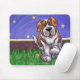 Animal Parade Niedlich St. Bernard Hund Maus Pad erstellt von Imagine That! Das Design zeigt unseren niedlichen, bräunlichen und weißen Hundecharakter, stehend in einem Grashof mit einem roten Ziegelzaun, einem strukturierten blauen Himmel und einem spielerisch scharfen lila Rahmen, der von unserem talentierten Kinderbuchkünstler Traci Van Wagoner gemalt wurde. Das lustige Jungtier steht mit einer gehobenen Pfote in der Spielposition. Diese lustige Haustierkunst ist perfekt für Hundeliebhaber und humorvolle Tierkunstliebhaber jeden Alters. Auf vielen unserer skurrilen Hundesartikel vom St. Bernard finden Sie diesen niedlichen Welpen, der auf der einen Seite mit dem spielerischen Hundekopf von St. Bernard und auf der anderen mit dem lustigen Schwanz des Hundes kommt. Nehmen Sie an der Tierparade teil und bringen Sie ein Lächeln ins Gesicht von jemandem, den Sie Liebe mit einem Geschenk unseres niedlichen Bernardhundes. Woof!