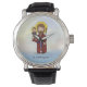 Der hl. Christopher ist einfach gemalt. Er hält Jesus und trägt einen Stab in seiner Hand. Die Aquarellbilder verweisen auf den Fluss, den er überquert, während er das christliche Kind trägt. Schicken Sie Segnungen am St. Christopher’s Day. Ideal für Erwachsene oder junge Menschen. Sein Festtag wird am 25. Juli gefeiert, aber das kann jederzeit gesendet werden.