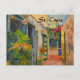 Diese wunderschöne Postkarte zeigt eine Adaption eines schönen Kunstgemäldes einer kleinen Straße in St. Croix, Jungfrau Islands, von der amerikanischen Künstlerin Anna Unterman. Die helle, sonnige Szene ist ein Aufruhr von Farben. Über dem Bogen befindet sich eine rote, rosa und magentafarbene Bougainvillea-Rebsorte, Orangenflammweine und andere grüne Sträucher und Blätter. Die farbenfrohen Gebäude sind Gelb, Gold, Blau und Grün. Reprint mit Genehmigung des Anwesens von Anna Unterman. Alle Rechte vorbehalten. Der Titeltext lautet: St. Croix. Es kann individuell angepasst oder entfernt werden.