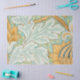 Dieses Design zeichnet sich durch einen hochauflösenden Ausdruck eines Tapetenmusters aus, das vom britischen Künstler William Morris (1834-1896), der mit der Kunsthandwerksbewegung assoziiert ist, erstellt wurde. Es handelt sich um ein Blumenmuster mit miteinander verflochtenem Blattwerk, Blätter und Blume. Die Blätter sind in verschiedenen Grüntönen gehalten, die Blume sind in Orangetönen gehalten. Der Hintergrund ist türkisblau. Das Original wurde 1881 für William Morris und Co. entworfen.