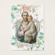 Dies ist ein wunderschönes, Vintages katholisches Bild von St. Joseph, das das Baby Jesus mit Pfirsich und eucalyptus floralen Hintergrund hält. Auf der Rückseite ist ein schönes Gebet zum Schutz des heiligen Joseph.