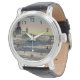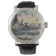 Uhr, Vintage Männeruhr mit schwarzem Lederarmband