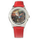 Kinderuhr aus Edelstahl mit rotem Lederarmband