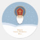 St. Nikolaus Tagessticker (Anfang Dezember in Europa gefeiert) mit blauem hellen Hintergrund und Schnee. Fügen Sie sie Ihren Geschenken, Paketen oder Briefen hinzu!