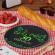 St Patrick Day Geburtstag Lasse Party Kleeblatt Erwachsenen Papier Teller. Grünes Glitzern Kleeblatt auf benutzerfreundlichem Schwarz. Saint Patrick's Tag grüne funkelnd Glitzer Klee. Foto der Glitzern, nicht Glitzer!