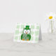 Niedliche und entzückende Eule mit seinem kleinen Koboldhut in den Schatten von Dunklem und von hellgrünem, mit einer gelben Schnalle. Dieser Vogel ist bereit, St Patrick Tag in der Art zu feiern. Grünen Sie auf Grün mit einem hellfarbigen Kleeblatthintergrund. Groß für Tierfans und Eulensammler. Entwurfs-Copyright © www.CuteComfy.com 2013