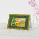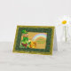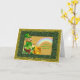 Ein Kobold in seinem Hut und in extravaganten Anzug sitzt auf einem hölzernen Stumpf, während, seinen Topf Gold und ihn zu halten und das Betrachten Regenbogenende ist. Niedlich und traditionell wie die Fabel. Sie können den vorderen und inneren Text zum Anzug besonders anfertigen. Hat glittery, funkelt wie Blick und glaubt zu ihm.