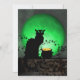 Eine Silhouette der Schwarzen Katze von Théophile Steinlen für den Le Chat Noir Club in einem modernen Rahmen für den St. Patrick's Day mit der Katze mit grünen Augen, einem grünen Vollmond, einer Weinrebe mit Kleeblättern und einem Goldtopf.
