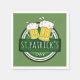 Festliche Servietten des St. Patrick's Day mit einem Bild von zwei Tasse mit Schaumstoff, auf einem Kreis mit den Worten "St. Patrick's Day". Die Hintergrundfarbe ist anpassbar.