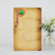 Eleganter keltischer Alphabet, geometrische Blumenmotive aus einem mittelalterlichen Manuskript aus altbraunem Pergament mit einem Edelsteinschmuck aus 3D-grünem Kleeblatt von Bulgan Lumini (c)