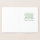 Goldenes dreiseitiges Kleeblatt auf der Vorderseite und irischer Segen im Inneren (den Sie mit Ihrer eigenen Nachricht behalten oder ersetzen können). Der Insider-Text lautet "Möge die Straße aufsteigen, um Sie zu treffen. Möge der Wind immer auf deinem Rücken sein. Möge die Sonne auf Ihrem Gesicht wärmen, der Regen fällt sanft auf Ihre Felder. Und bis wir uns eines Tages wiedersehen, möge Gott dich in der Hohle seiner Hand halten. Alles Gute zum St. Patrick's Day!"